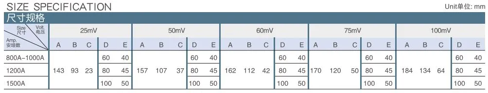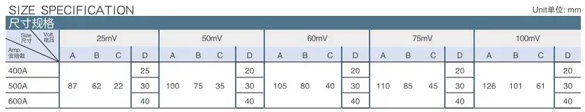 1. Rated voltage drop range: 1A-50A 10mV~800mV;51A-2500A 10mV~300mV.