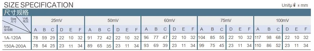 1. Rated voltage drop range: 1A-50A 10mV~800mV;51A-2500A 10mV~300mV