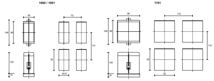 เครื่องมือวัดและควบคุมรุ่น 1000 มีขนาด 48x96 (1/8 DIN) และรุ่น 1001,1101 มีขนาด 96x96 (1/4 DIN) ระดับการป้องกัน IP54 ใช้งานง่าย ด้วยเพียงปุ่มเพียง 3 ปุ่ม แสดงค่าด้วย LED สีเขียว 3 หลักจำนวน 2 แถว สำหรับรุ่น 1001 และ 1101 สำหรับการทำงานของ 3 รีเลย์เอาท์พุทมี LED สีแดง แสดงผลการทำงาน และ LED สีเขียวแสดงการควบคุมของเอาท์พุทหลัก
