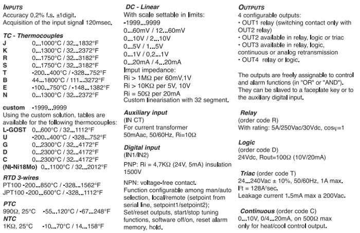 • Self-tuning, Auto-tuning, Soft-Start, bumpless Man/Auto function