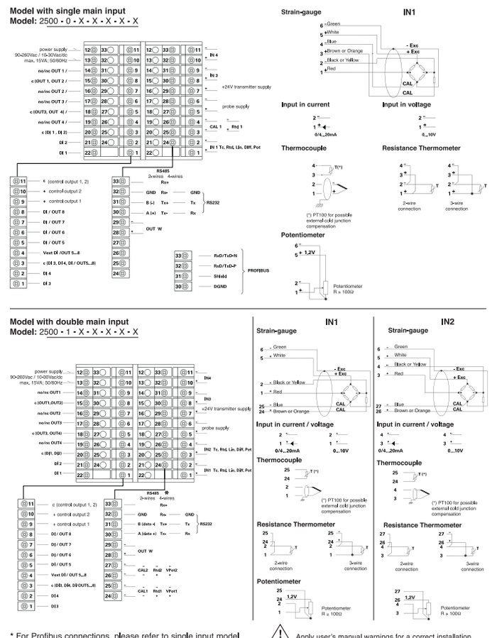 • Double configurable input for strain gauge / Potentiometer / linear signal / TC / RTD