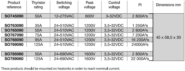 SO7 เป็นโซลิดสเตทรีเลย์ที่ออกแบบมาสำหรับ Inductive Loads (AC-53) เช่น มอเตอร์ทำงานแบบ Random มีวงจรป้องกันแรงดันเกินชั่วขณะทางด้านอินพุท (Transil) และเอาท์พุท (RC และ VDR) มี LED แสดงสถานะการทำงาน