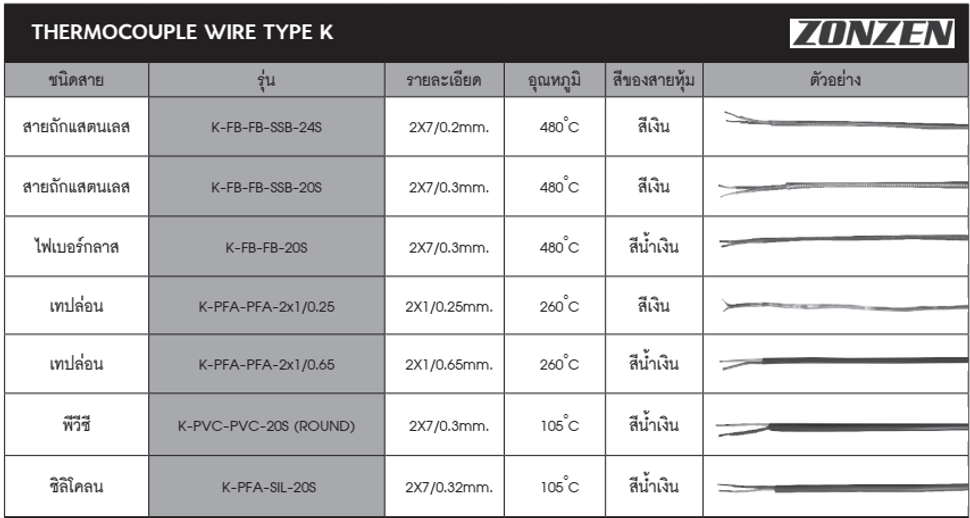คุณสมบัติ THERMOCOUPLE WIRE TYPE K
