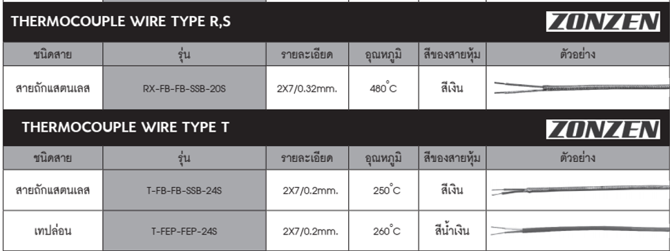 RX-FB-FB-SSB-20S,Brand: ZONZEN : Thermocouple Type R,S สายทนความร้อน ชนิดสายแสตนเลส สามารถทนความร้อนได้ถึงอุณหภูมิ 480 ํC