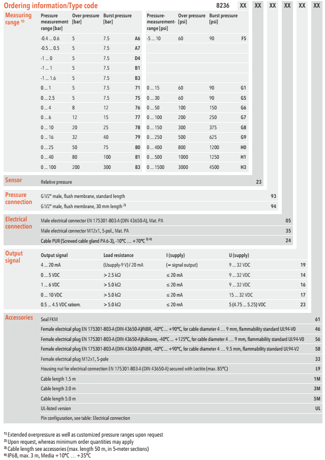 • Range มีให้เลือกตั้งแต่ 0...1 bar จนถึง 0...100 bar