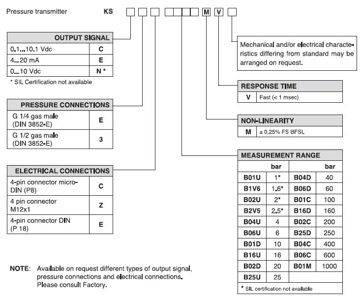 KS,Brand: GEFRAN : Pressure Transmitter เป็นตัวแปลงแรงดันออกเป็นสัญญาณ Analog