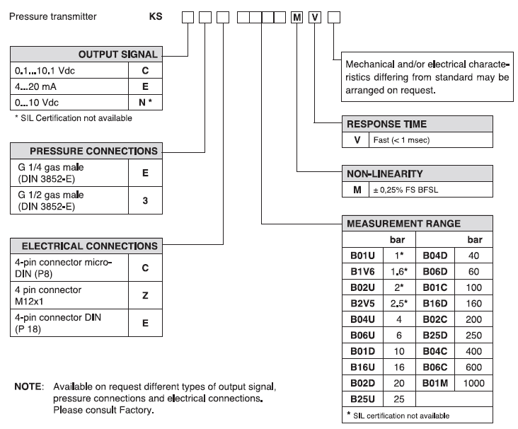 • Range 1-1000 bar.