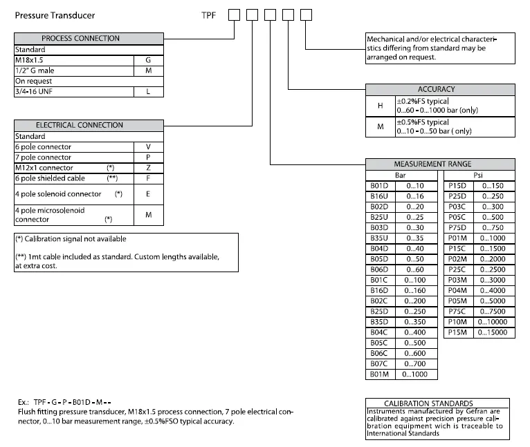 คุณสมบัติ Pressure Transducer ยี่ห้อ GEFRAN