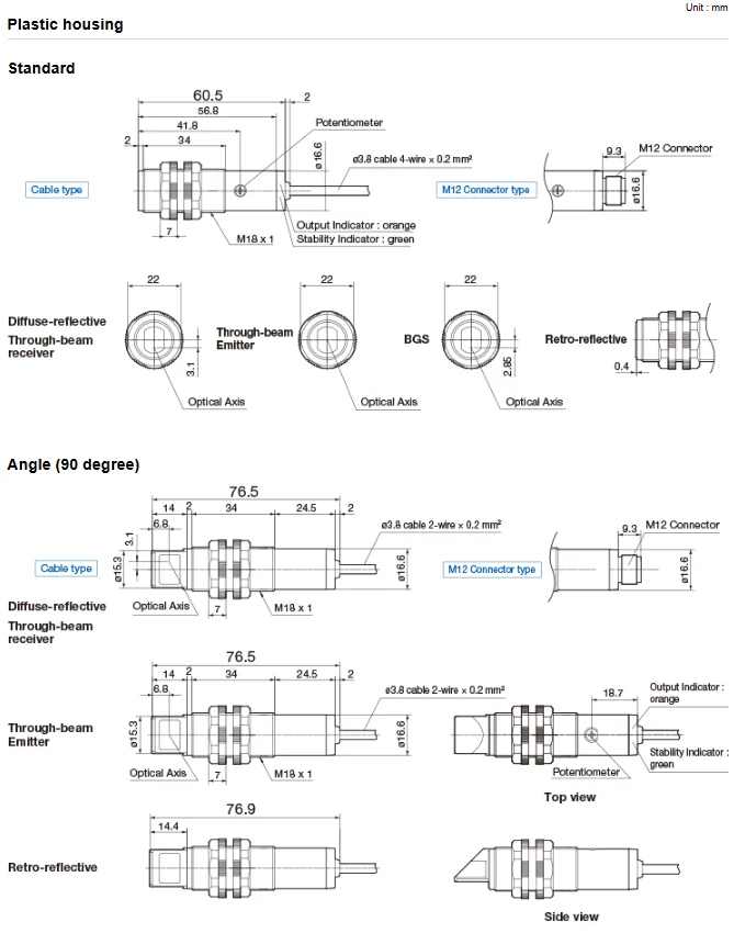 • ขั้วออกสัญญาณเป็นแบบชนิดเกลียว M12 QD และชนิดสายเคเบิล
