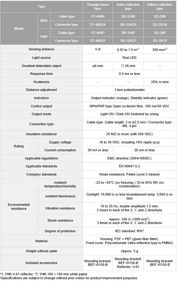 คุณสมบัติ Photoelectric Sensor ยี่ห้อ OPTEX-FA