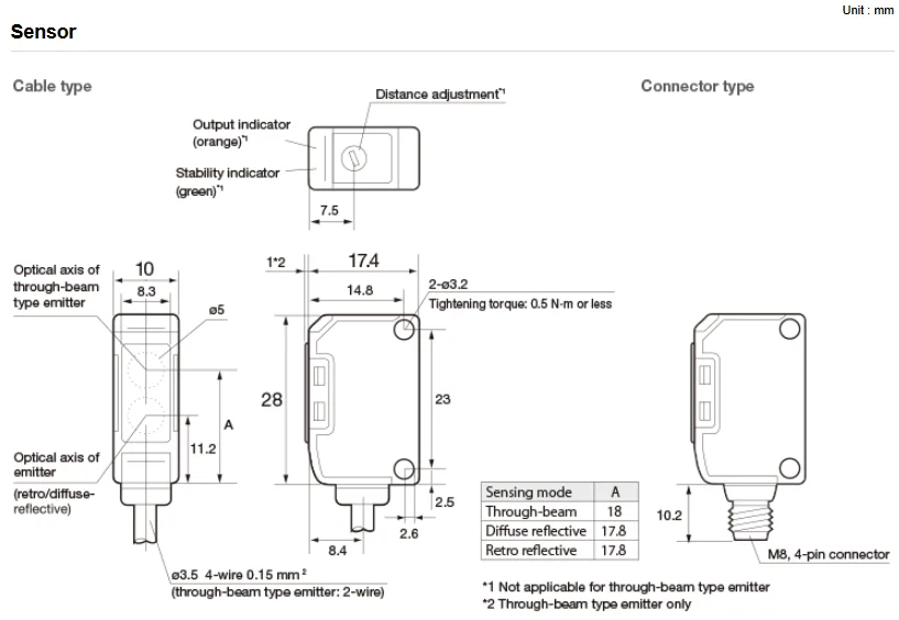 • ขั้วออกสัญญาณเป็นแบบชนิดเกลียว M8 QD และชนิดสายเคเบิล