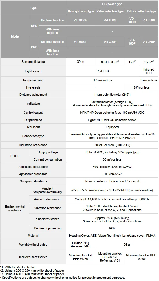 คุณลักษณะ Photoelectric Sensor ยี่ห้อ OPTEX-FA