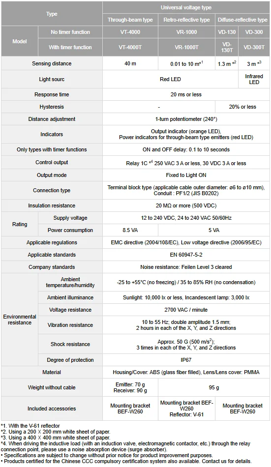 V Series,Brand: OPTEX-FA : Photoelectric Sensor สามารถต่อใช้แรงดันไฟฟ้า 12~240 VDC / 24~240 VAC