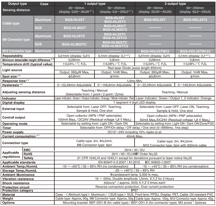 BGS-HL series,Brand: OPTEX-FA : Laser Sensors ตรวจจับความแตกต่างความสูง 0.08 mm. (BGS-HL05 **)