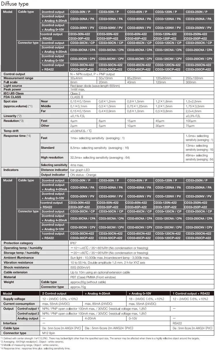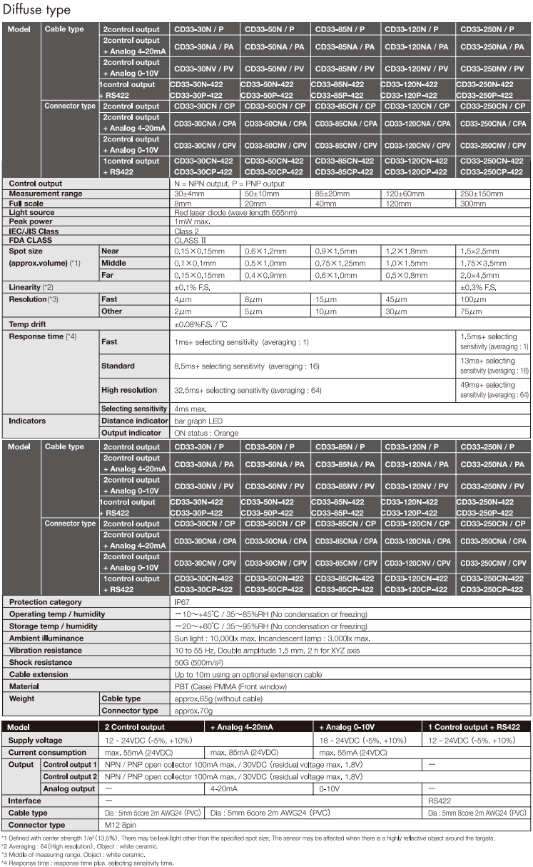 CD33 Series,Brand: OPTEX-FA : Displacement Sensors เซ็นเซอร์ตรวจจับระยะทางและขนาดชิ้นงาน