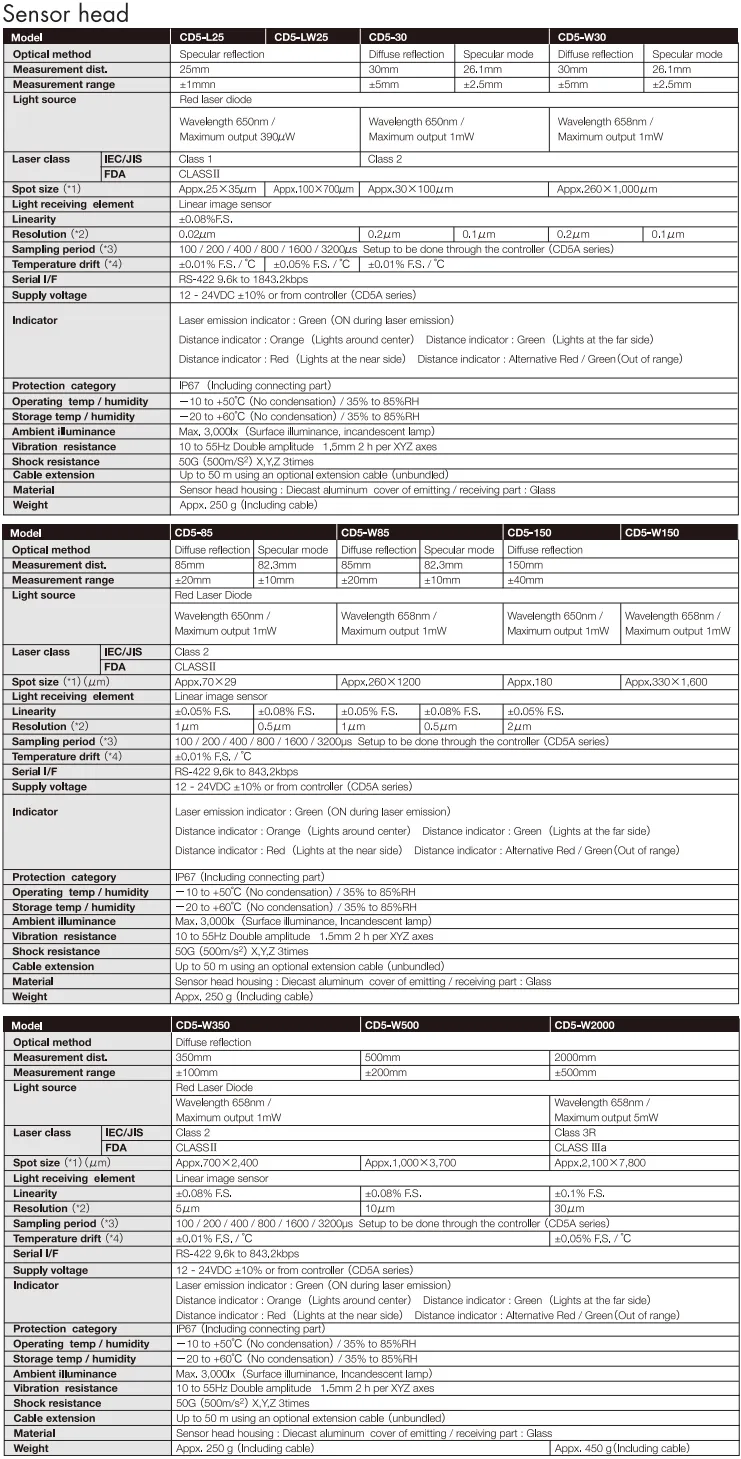 • Sensing heads can function without controller (Patent pending) Direct connection to PC is possible via RS-422