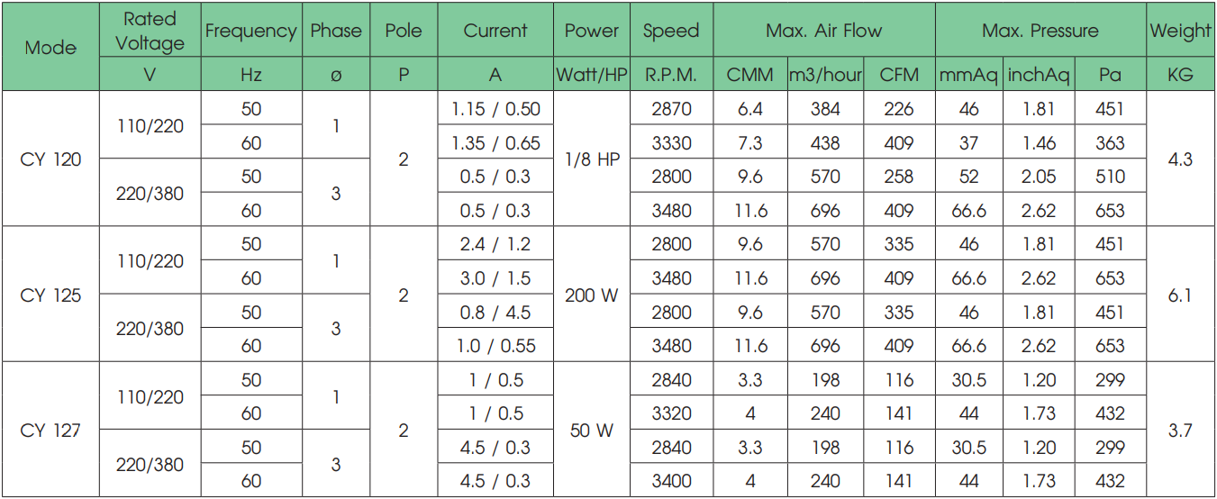 CY125,Brand: CAMYORK : Blower Fan 1Phase และ 3 Phase 200W