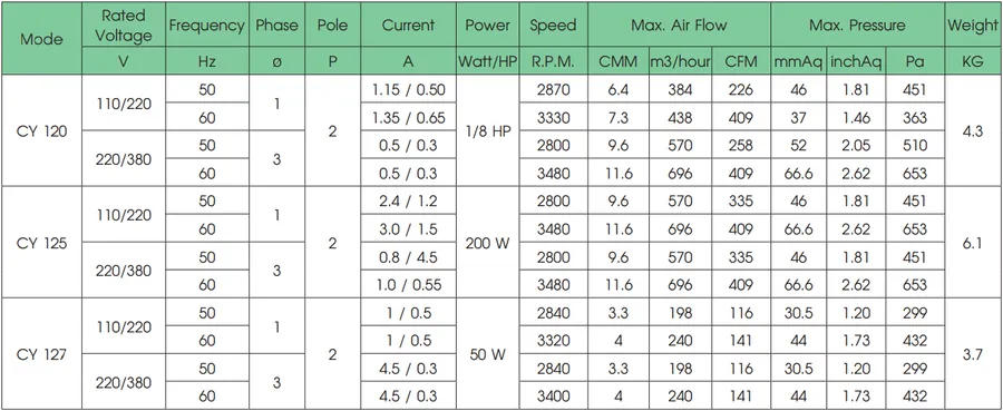 CY125M,Brand:CAMYORK : Blower Fan 1Phase และ 3 Phase 1/2HP